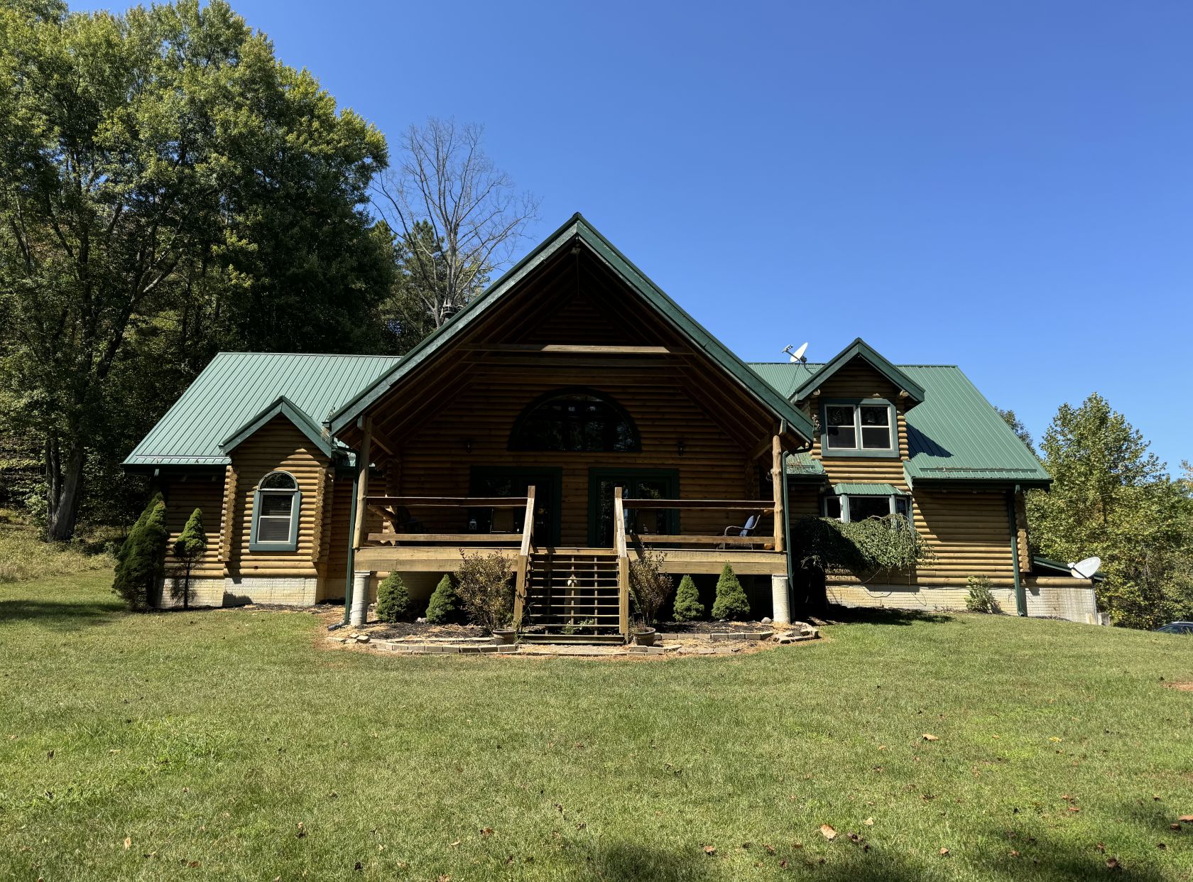 Located on 57 beautiful wooded acres with a small shared pond. We can accommodate up to 24 people for an overnight stay. Ready for business or pleasure, the amenities of this rustic feeling lodge are extensive. A fully equipped kitchen, two charcoal grills, gas fire place, fire pit, billiard room, screened-in and open-air porches, high-speed internet and WiFi, big screen TV. The lodge has 7 Bedrooms and 3 1/2 Bathrooms.